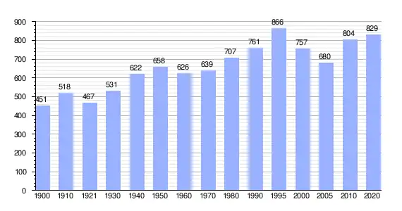 En 2020 registró una población de 829 personas, lo que corresponde al 6.39 % de la población municipal.[12] De los cuales 417 son hombres y 412 son mujeres.[12] Tiene 2031viviendas particulares habitadas.[12]
