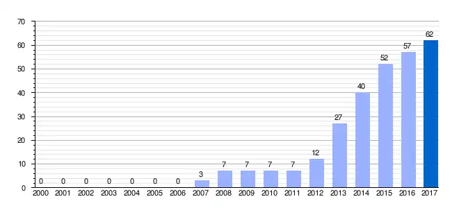 | Gráfica de evolución demográfica de San Julián de Valmuza[6] entre 2000 y 2017 |