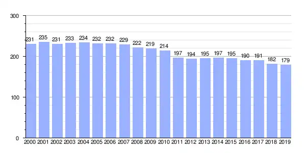 | Gráfica de evolución demográfica de San Justo (parroquia) entre 2000 y 2019 |