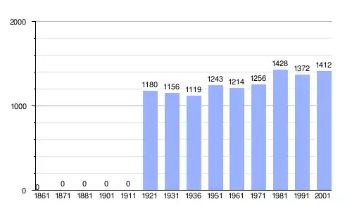 | Gráfica de evolución demográfica de San Lorenzo Isontino entre 1861 y 2001 |