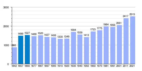 | Gráfica de evolución demográfica de Sant Llorenç Savall[4] entre 1842 y 2021 |