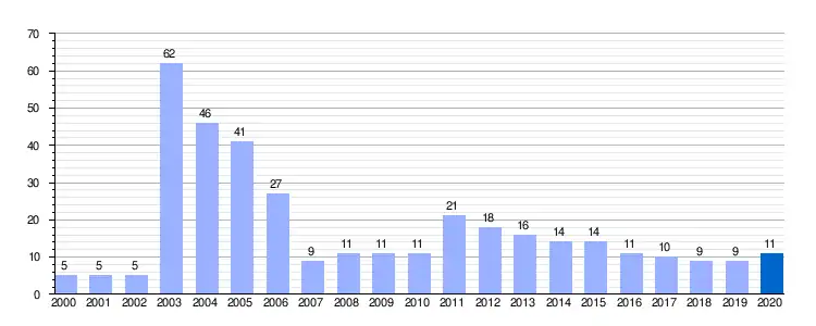 | Gráfica de evolución demográfica de San Mamés de Zalima entre 2000 y 2020 |