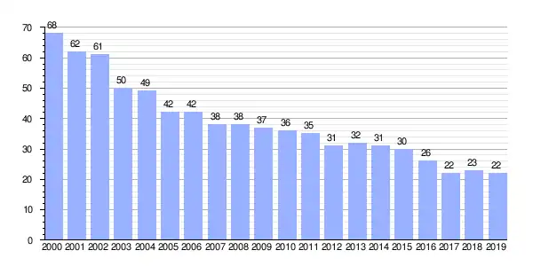 | Gráfica de evolución demográfica de San Mamede entre 2000 y 2019 |