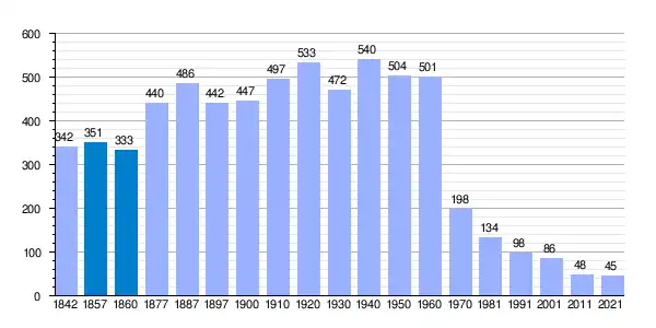 | Gráfica de evolución demográfica de San Martín de Boniches[3] entre 1842 y 2021 |