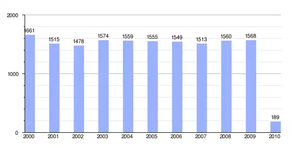 | Gráfica de evolución demográfica de Jubia entre 2000 y 2010 |