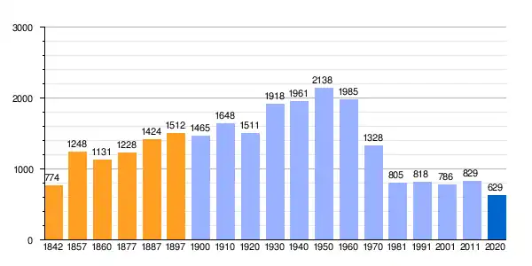 Población de derecho (1842-1897, excepto 1857 y 1860 que es población de hecho) según los censos de población del siglo XIX. Población de derecho (1900-1991) o población residente (2001-2011) según los censos de población del INE. Población según el padrón municipal de 2020 del INE. |