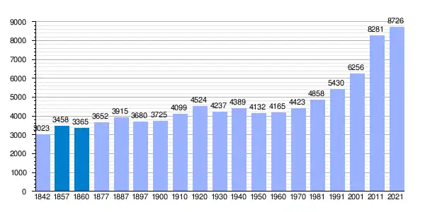 | Gráfica de evolución demográfica de San Martín de Valdeiglesias[5] entre 1842 y 2021 |