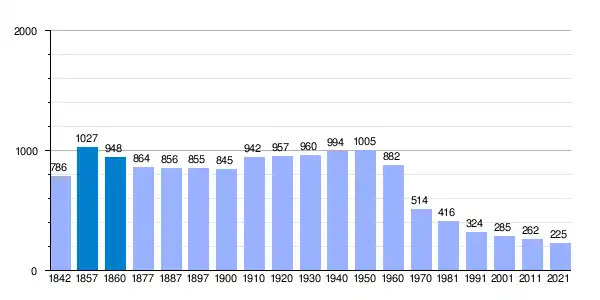 | Gráfica de evolución demográfica de San Martín del Castañar[5] entre 1842 y 2021 |