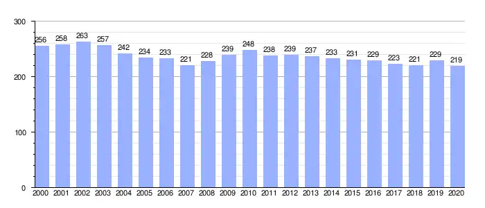 | Gráfica de evolución demográfica de San Martín del Mar[3] entre 2000 y 2020 |
