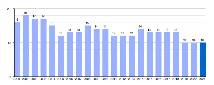 | Gráfica de evolución demográfica de San Martín del Monte entre 2000 y 2021 |