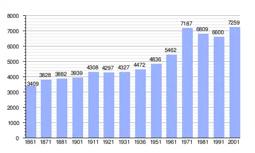| Gráfica de evolución demográfica de San Maurizio Canavese entre 1861 y 2001 |