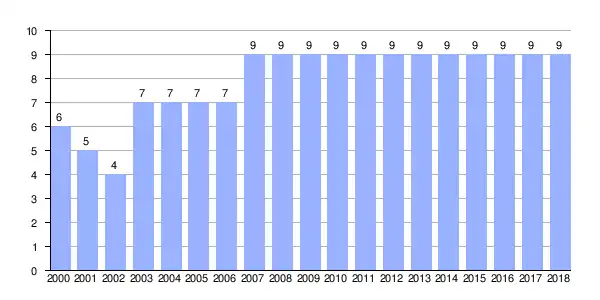 | Gráfica de evolución demográfica de San Miguel entre 2000 y 2018 |