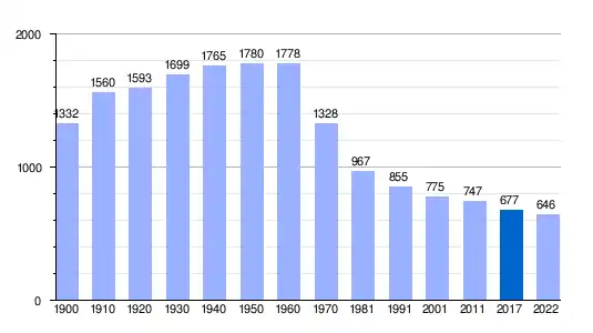 En el 2017 la población del municipio ascendía a 677 habitantes. La densidad de población, para una superficie total de 55,51 km²,[7] es de 12,2 hab./km².