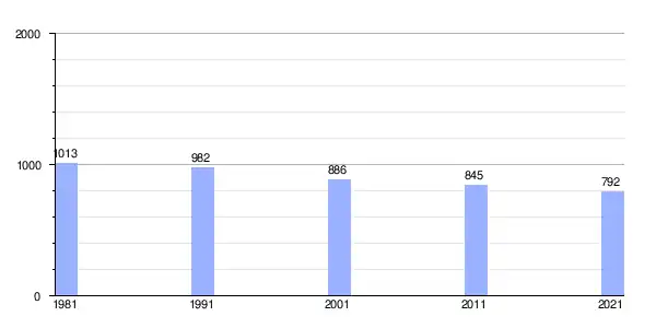 | Gráfica de evolución demográfica de San Miguel del Cinca[5] entre 1981 y 2021 |