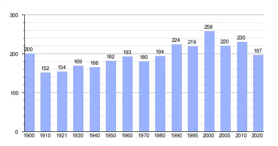 | Gráfica de evolución demográfica de San Pedro Tlatemalco entre 1900 y 2020 |