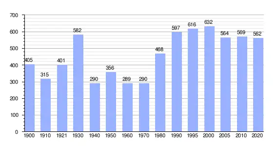 En 2020 registró una población de 562 personas, lo que corresponde al 3.00 % de la población municipal.[1][7] De los cuales 295 son hombres y 267 son mujeres.[1][7]