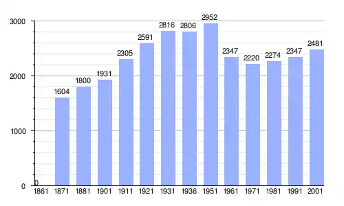 | Gráfica de evolución demográfica de San Pietro Viminario entre 1861 y 2001 |