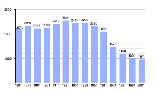 | Gráfica de evolución demográfica de San Pietro in Cerro entre 1861 y 2001 |