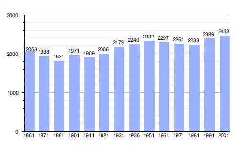 | Gráfica de evolución demográfica de San Quirico d'Orcia entre 1861 y 2001 |