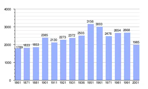 | Gráfica de evolución demográfica de San Roberto entre 1861 y 2001 |