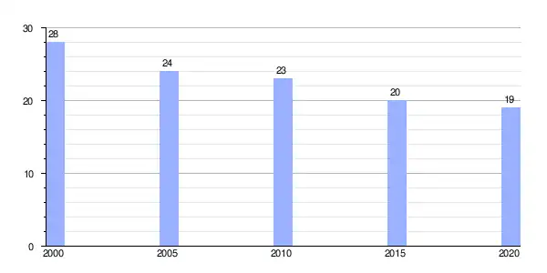 | Gráfica de evolución demográfica de San Román (aldea) entre 2000 y 2020 |