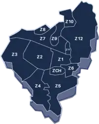 | Subdivisiones | 5 Distritos; 12 Zonas | |||