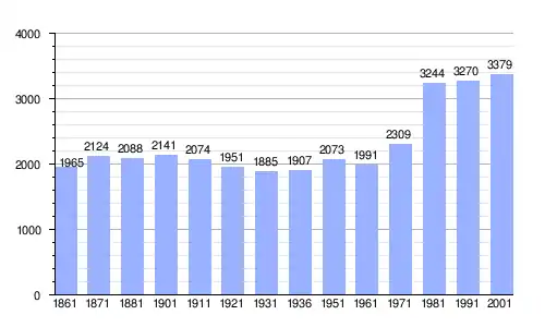 | Gráfica de evolución demográfica de San Secondo di Pinerolo entre 1861 y 2001 |