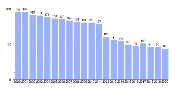 | Gráfica de evolución demográfica de Sanguiñedo (lugar) entre 2000 y 2020 |
