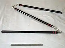 Históricamente fueron de roble blanco, madera encerada o arce rojo chino, las varas modernas se construyeron a partir de la caña india, bambú, varias maderas duras o aluminio. Para un ajuste óptimo, las varas de los extremos deben ser aproximadamente de la longitud del brazo del combatiente (generalmente de 60 centímetros a 70 centímetros), mientras que la del centro debe ser algo más pequeña. Además, deben tener un diámetro combinado para caber perfectamente en la palma de la mano (por lo general alrededor de 32 milímetros). Estos están conectados por cadenas de anillos (por lo general de 127 milímetros); versiones modernas utilizan articulaciones de esferas y conectadas.