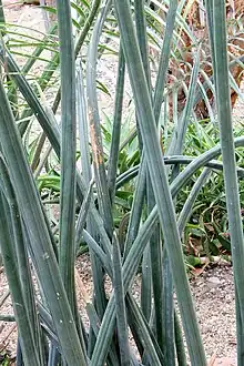 Es una planta herbácea sin tallo, con rizoma geófito subterráneo, de 5-9 cm de largo, 32 mm de diámetro. Las hojas son solitarias, erectas, rígidas, cilíndricas, de hasta 3 m de largo, 23 mm de espesor en el centro, ligeramente rugosas, estrechándose ligeramente hacia arriba hasta el vértice, el estrechamiento es un robusto y agudo punto blanquecino casi espinoso, los márgenes de color rojo parduzco a gris-verde con una membrana gris blanquecina en el lado externo, el margen gris parduzco desaparece con la edad. La inflorescencia es lateral, aparece al lado de la hoja, en un corimbo de 8-10 cm de largo. El fruto es una baya globosa, de 13-15 mm de diámetro; con semillas de 1 ≈ 0,7 cm.[6]