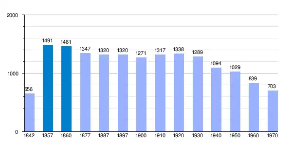 | Gráfica de evolución demográfica de Sant Martí de Maldá[3] entre 1842 y 1970 |