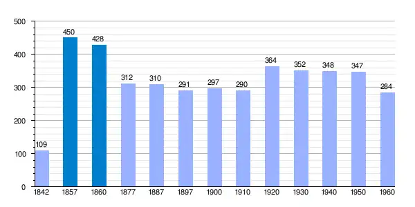 | Gráfica de evolución demográfica de Sant Cerní[3] entre 1842 y 1960 |