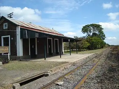 Fundada en 1912 está ubicada sobre las vías de lo que fue el ferrocarril Belgrano, denominándose “parada Km 128”, a cuyo alrededor fue desarrollándose el pueblo. Dicha estación se encontraba en los campos de Don Carlos Santa Coloma, origen del nombre de la estación y del pueblo desde 1930.[1][2]