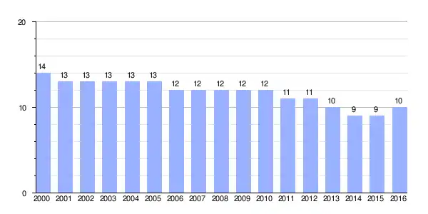 | Gráfica de evolución demográfica de Santa Cristina del Páramo[2] entre 2000 y 2016 |