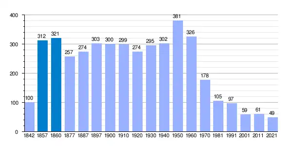 | Gráfica de evolución demográfica de Santa Cruz de Boedo[3] entre 1842 y 2021 |