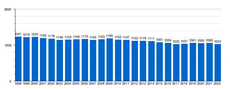 | Gráfica de evolución demográfica de Santa Eulalia[8] entre 1998 y 2022 |