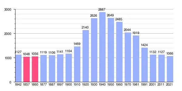 | Gráfica de evolución demográfica de Santa Eulalia[6][7] entre 1842 y 2021 |