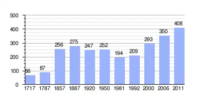 | Gráfica de evolución demográfica de Santa Fe del Penedès[4] entre 1842 y 2021 |