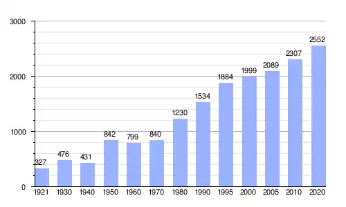 En 2020 registró una población de 2552 personas, lo que corresponde al 6.77 % de la población municipal.[7] De los cuales 1193 son hombres y 1359 son mujeres.[7]