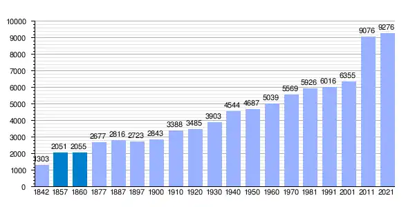 Entre el Censo de 1857 y el anterior, crece el término del municipio porque incorpora a 395000 (Lloreda). Población de derecho según los censos de población del INE. Población de hecho según los censos de población del INE. |