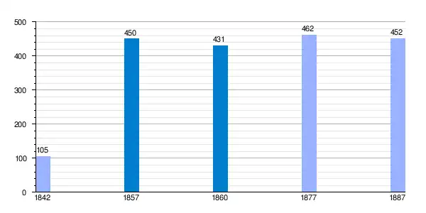 | Gráfica de evolución demográfica de Santa María y la Peña[1] entre 1842 y 1887 |