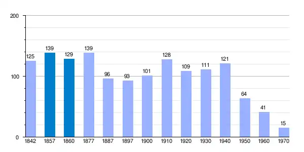 | Gráfica de evolución demográfica de Santa María en Cameros[2] entre 1842 y 1970 |