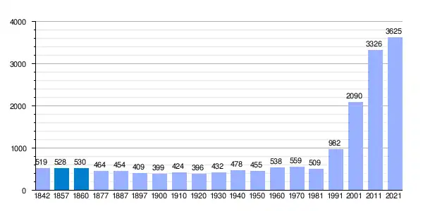 | Gráfica de evolución demográfica de Santa Susanna[4] entre 1842 y 2021 |