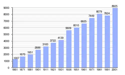 | Gráfica de evolución demográfica de Santa Teresa di Riva entre 1861 y 2001 |