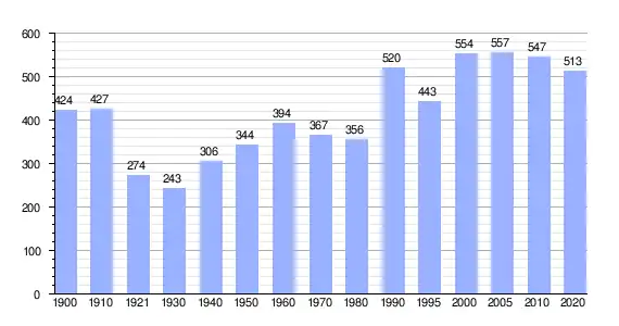 En 2020 registró una población de 513 personas, lo que corresponde al 2.81 % de la población municipal.[7] De los cuales 259 son hombres y 254 son mujeres.[7]