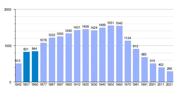 | Gráfica de evolución demográfica de Santiago de la Puebla[7] entre 1842 y 2021 |