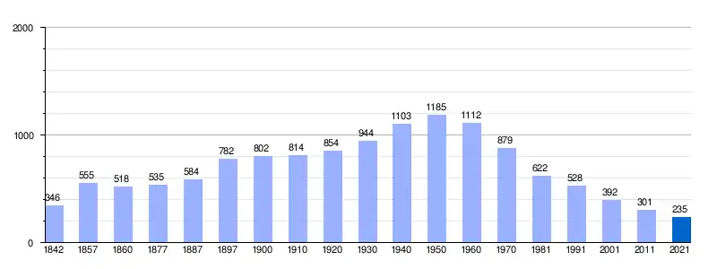 Población de derecho (1842-1991, excepto 1857 y 1860 que es población de hecho) o población residente (2001-2011) según los Censos de Población desde 1842. Población según el padrón municipal de 2021 del INE. |