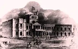 ![]() El Cuartel de Caballería Riograndense, nombre que llevó el Palacio de los López durante la ocupación aliada de Asunción. | ||