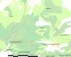 Saraz es una población y comuna francesa, en la región de Franco Condado, departamento de Doubs, en el distrito de Besançon y cantón de Amancey.