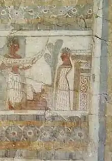 - De esta parte del sarcófago solo se pintó el fondo, reconstruido por una restauración moderna.[21][22]